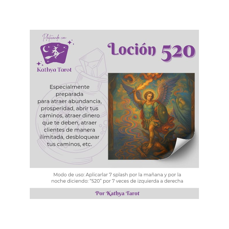 La loción 520 es una locion creada por KATHYA TAROT🧙🏽♀️ especialmente diseñado para atraer abundancia, prosperidad y fertilidad en tus negocios , abre tus caminos y destranca tus negocios para atraer buena suerte y clientes , activada con el Código Sagrado 520 que quiere decir la llegada de dinero inesperadamente, cada que la utilices deberás decir 520 x 7 veces , así estarás activando las más de 50 escencias que la loción 520 contiene , hemos tenido testimonios que a los 5 días comienzan a ver cambios en su vida en la parte económica.😀